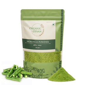 Moringa powder is derived from the nutrient-rich leaves of the Moringa tree, a significant herb in Ayurveda known for its medicinal properties. Loaded with essential nutrients, vitamins, and minerals, moringa powder is a powerhouse of Vitamin C, Vitamin A, Vitamin B6, riboflavin, iron, magnesium, zinc, protein, and fiber. Organic Gyaan offers the best moringa powder, which is pure moringa powder, non-toxic, free from additives, and completely unadulterated. We provide organic moringa powder at the most competitive price in the market, ensuring that it is hygienically packed to maintain maximum freshness and potency. You can easily buy moringa powder from us online.