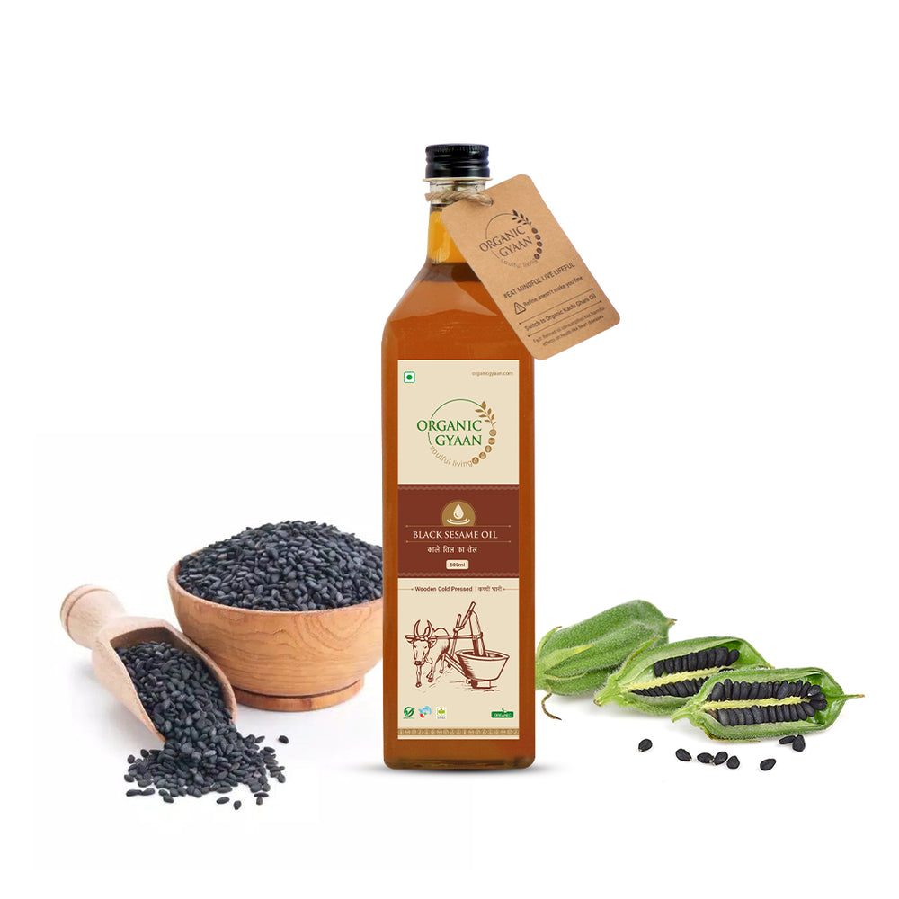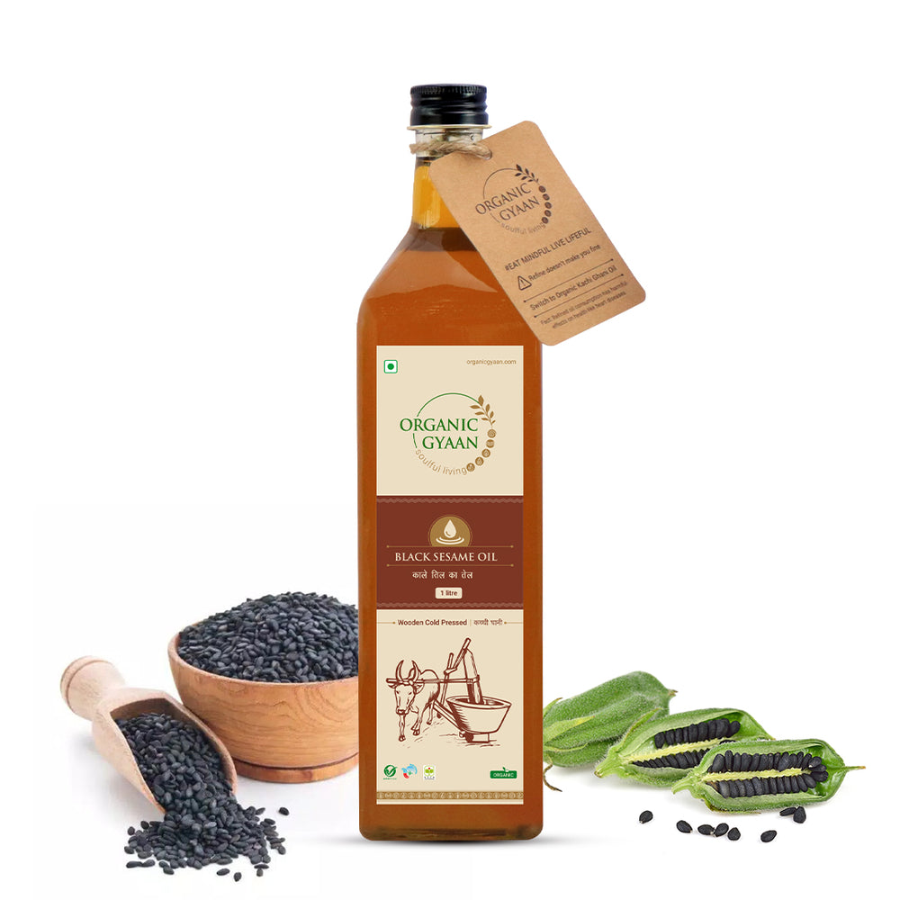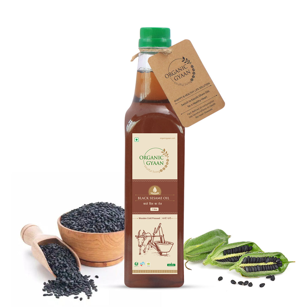 Organic Gyaan offers you unadulterated, unrefined and Wooden Cold Pressed Black Sesame Seed Oil that is absolutely natural and has essential nutrients in it. So, why choose Organic Gyaan’s Wooden Cold Pressed Black Sesame Oil?